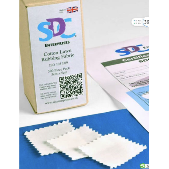 Vải cotton trắng SDC được sử dụng trong thử nghiệm độ bền màu với ma sát theo tiêu chuẩn ISO 105 F09. Sản phẩm được cắt sẵn, đảm bảo độ đồng nhất, sạch, không nhiễm tạp chất, giúp kết quả kiểm nghiệm chính xác và tái lập cao.